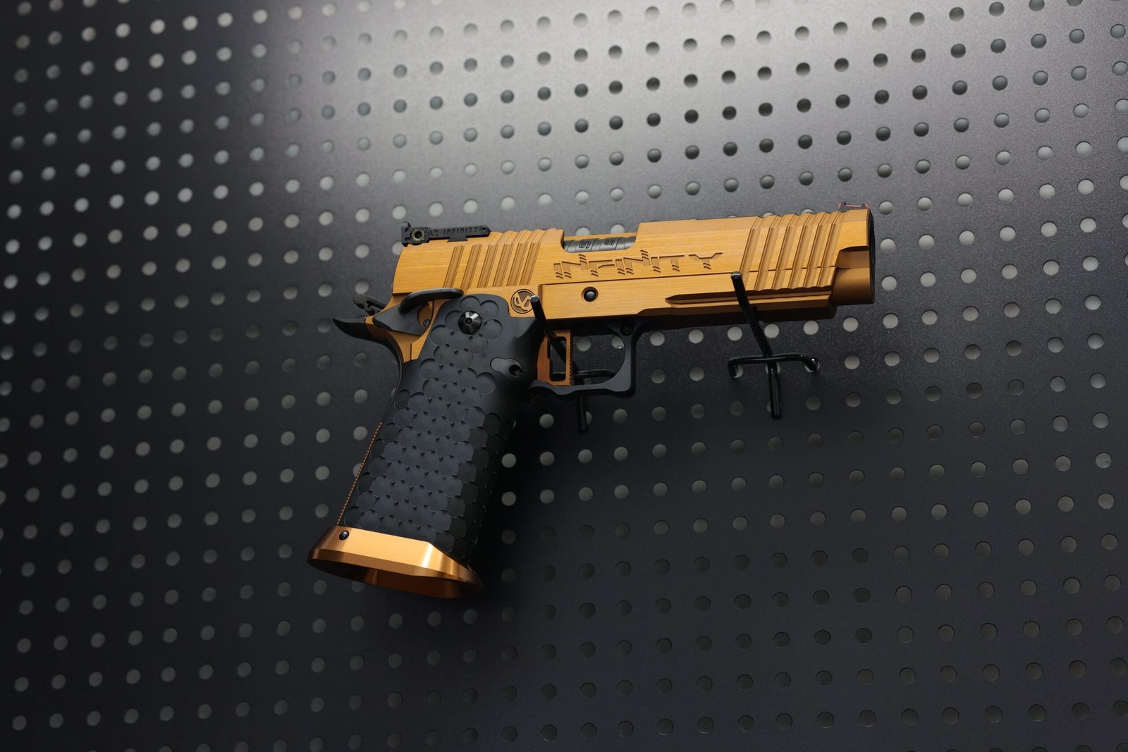 Remade Infinity Formula 5.1, went for a Bronze body with hairline finish, glow reflective polishing. Layered, rugged, a timeless appeal for a pistol. And I’m certain you’ll love the tailored subtle dark grey-black tone on sandblasted finish of the grip. Balanced with details.
