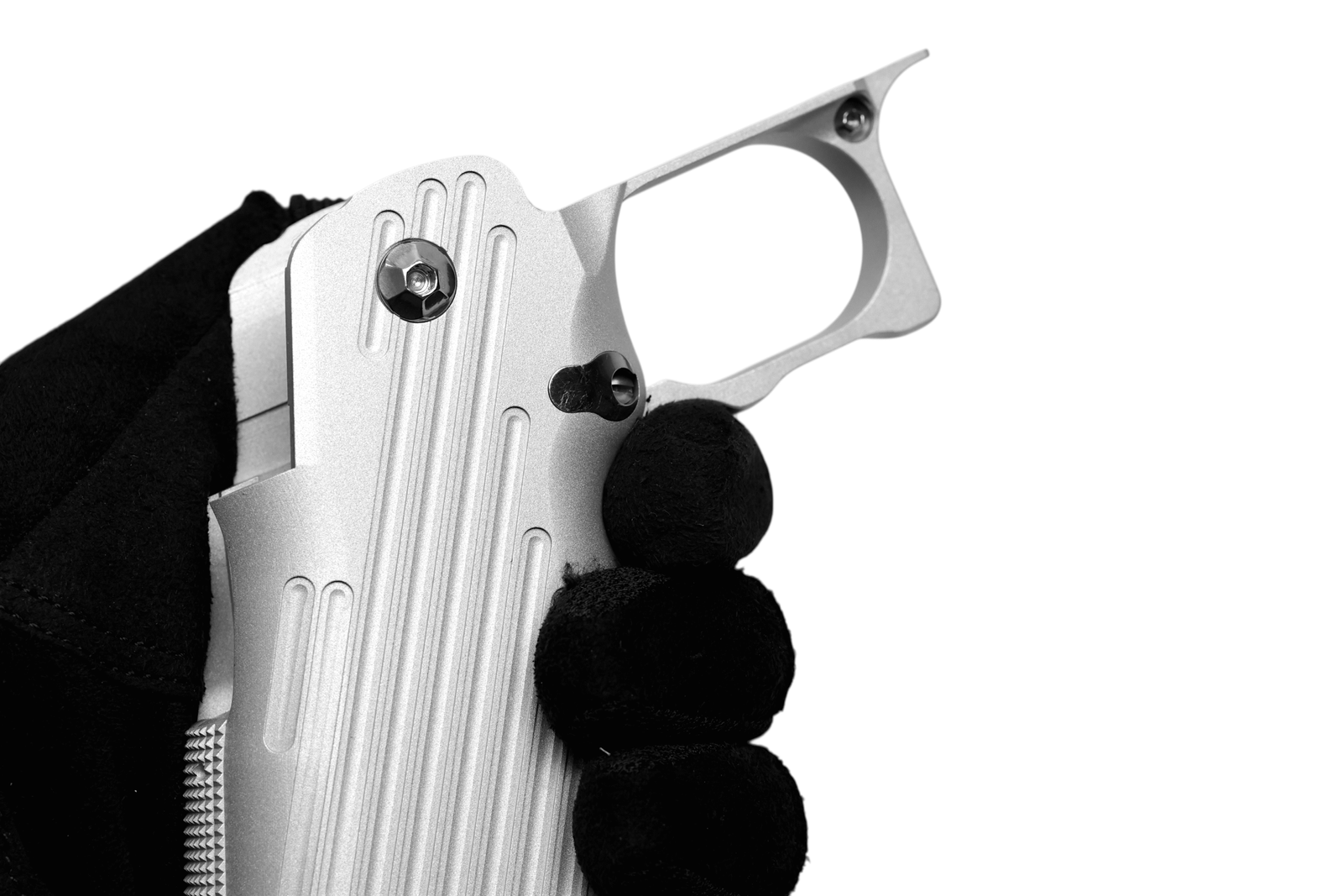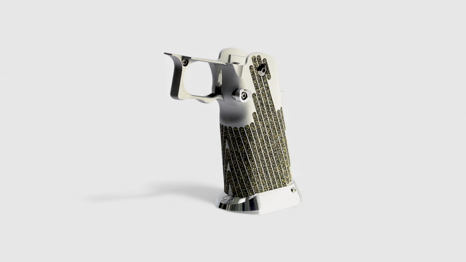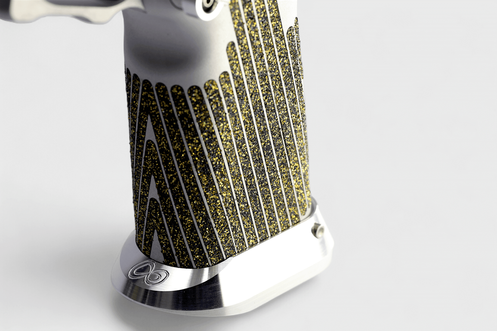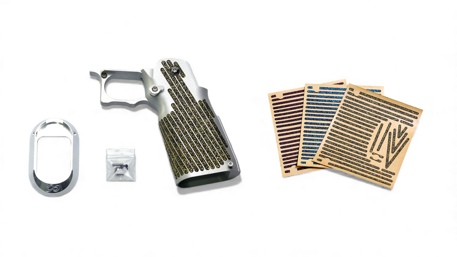 Standard black grips are boring; they disappear in the holster. The GSB ‘Infinity Textured 172‘ is designed to dominate the visual field. We’ve ditched the dull, flat sandpaper for our proprietary ‘Crystal’ abrasive tape —a material that mimics the ‘Real Steel’ aesthetic with a diamond-like sparkle under stage lights. This isn’t just about looking good; it’s about aggressive traction that refuses to let go.