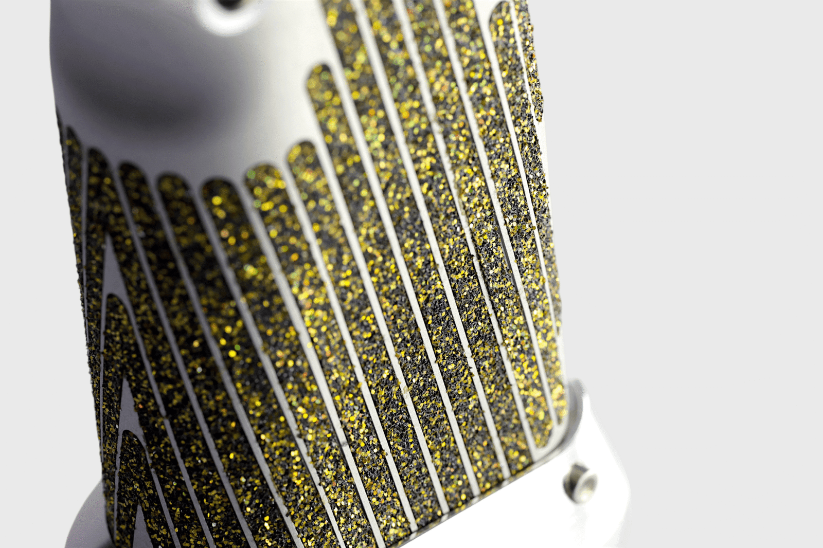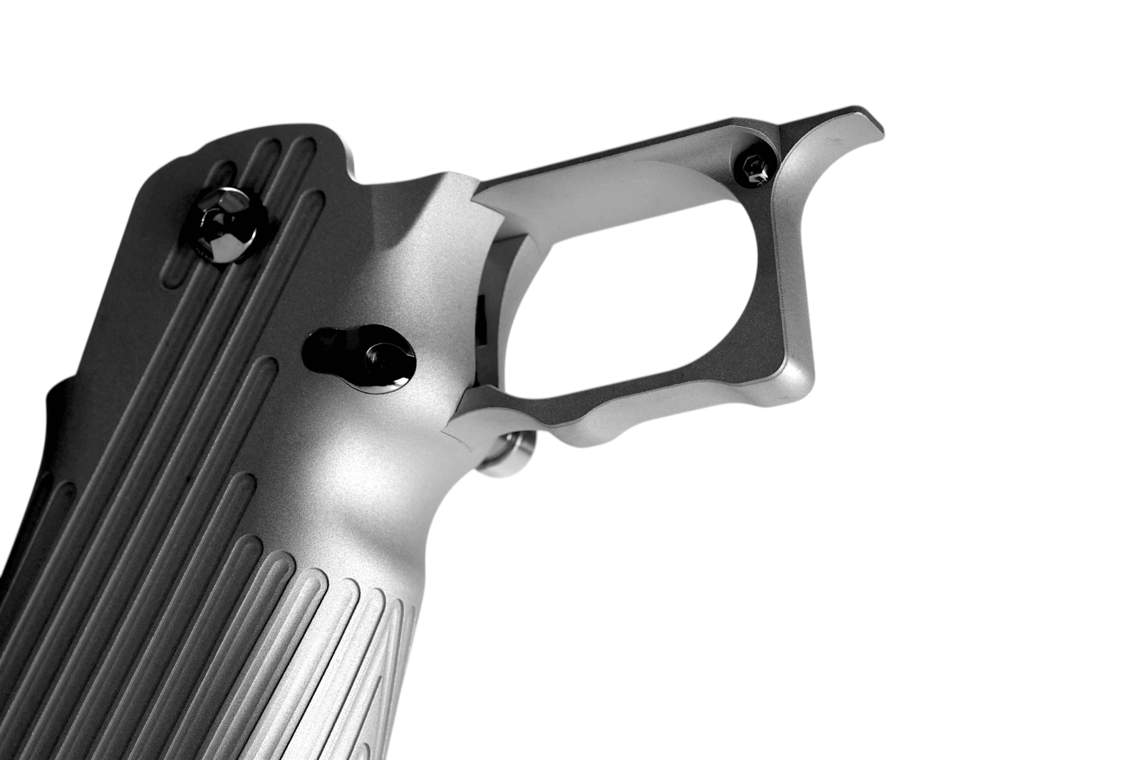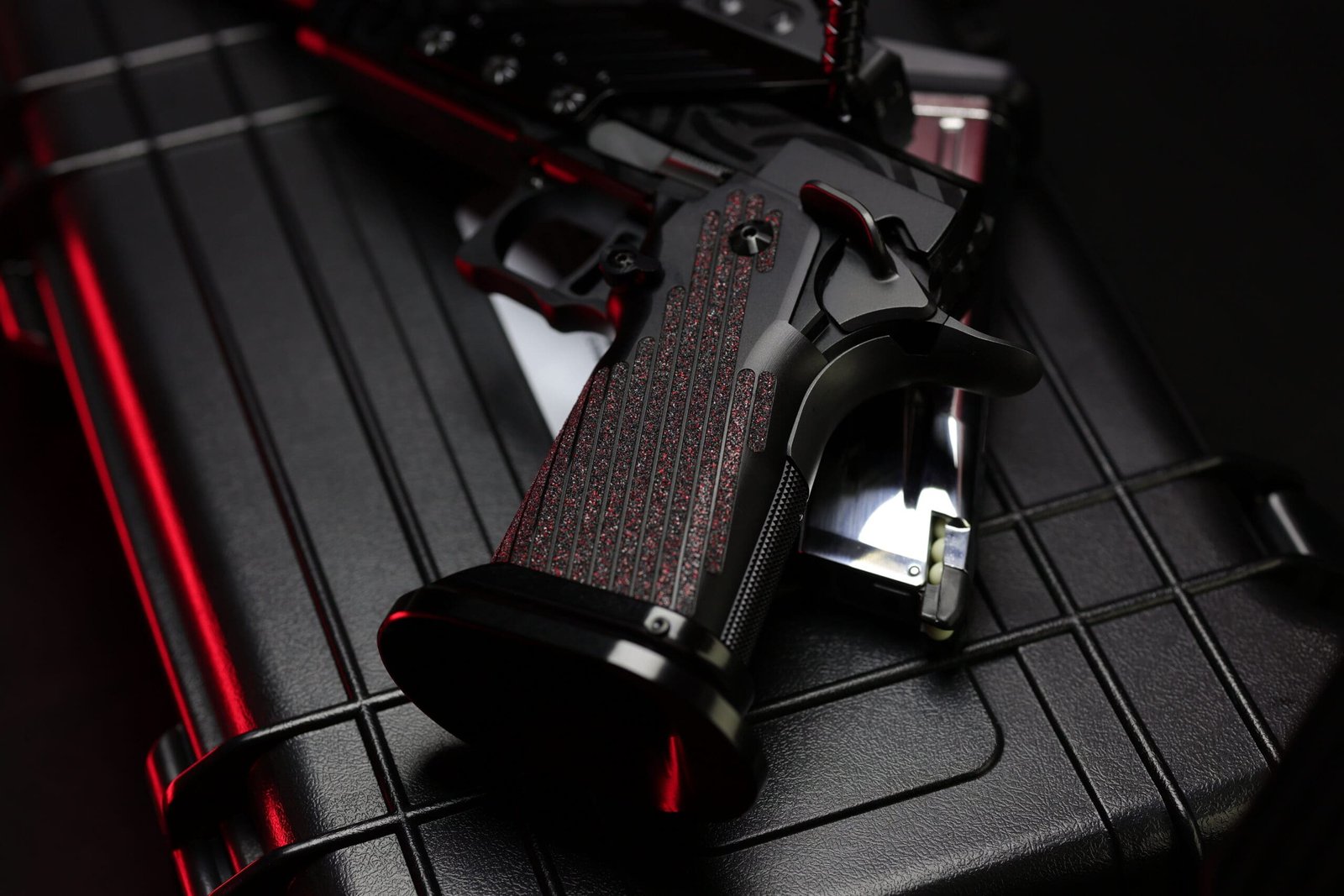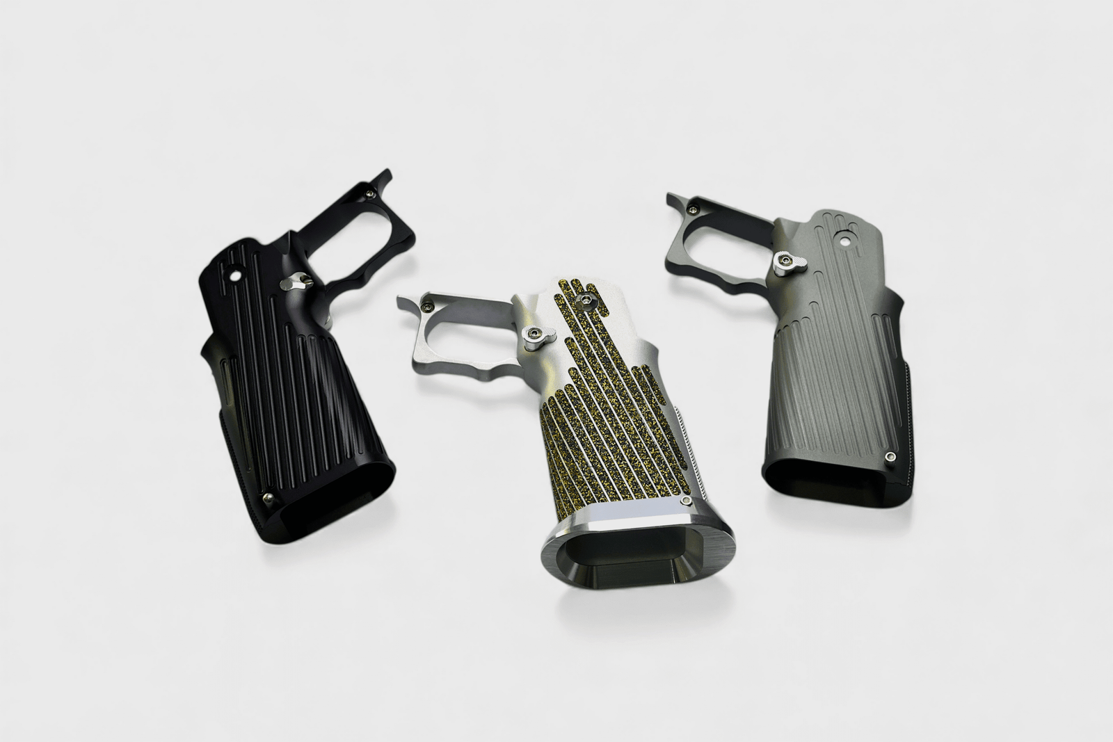 Standard black grips are boring; they disappear in the holster. The GSB ‘Infinity Textured 172‘ is designed to dominate the visual field. We’ve ditched the dull, flat sandpaper for our proprietary ‘Crystal’ abrasive tape —a material that mimics the ‘Real Steel’ aesthetic with a diamond-like sparkle under stage lights. This isn’t just about looking good; it’s about aggressive traction that refuses to let go.